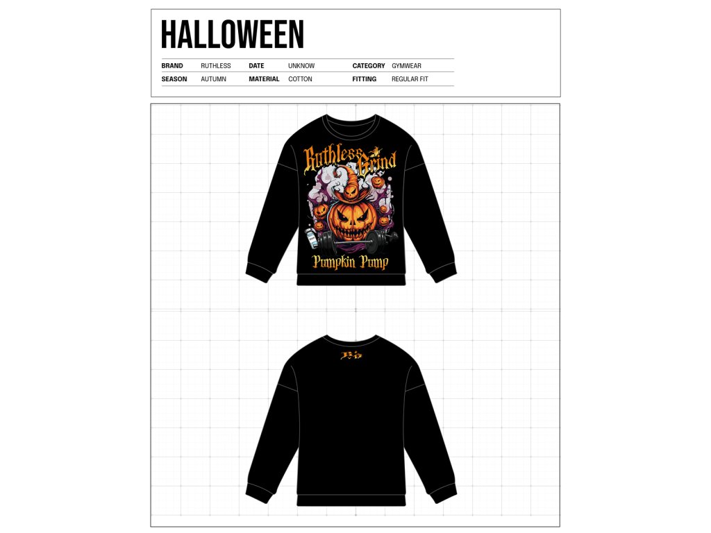 Myslíš, že Halloween je jen o sladkostech a strašení? Pro tebe je to Ruthless Grind a Pumpkin Pump! Nahoď tuhle mikinu a dej celému fitku najevo, že i během strašidelné sezóny ti jde hlavně o pořádné svaly. Budeš nepřehlédnutelný, ať už zvedáš dýni, nebo činku. Pamatuj, že tvoje forma je strašidelně dobrá!